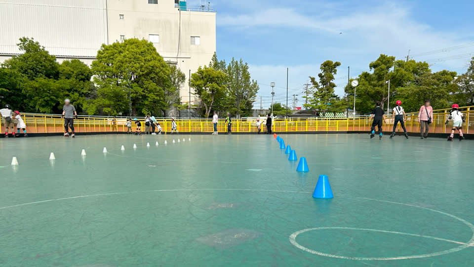 西日本唯一の日本ローラースケート連盟公認リンク。 大会などが開催されています。リンクは1周130メートル、中のフロアは広さ789平方メートル。